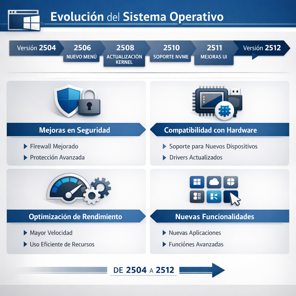 Diagrama: Evolución del sistema operativo (2504 → 2512)