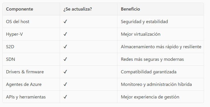 Porque si se utilizara los métodos anteriores solo se actualizaría el sistema operativo y es incorrecto ya que Azure Local no es solo el sistema Operativo de los Hosts, cuando actualizamos Azure Local con cualquier método de los dos posibles actualizamos: